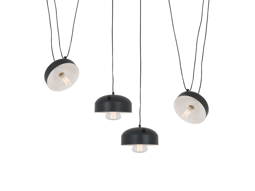 A maior inspiração para a criação do candeeiro Popo foi a moda industrialista. Daí os cabos expostos e as lâmpadas à vista. Os abajures vistos em holofotes da moda conferem ao candeeiro um charme rebelde. O lustre Popo adapta-se a interiores modernos cujos proprietários apreciam detalhes marcantes e soluções inovadoras.